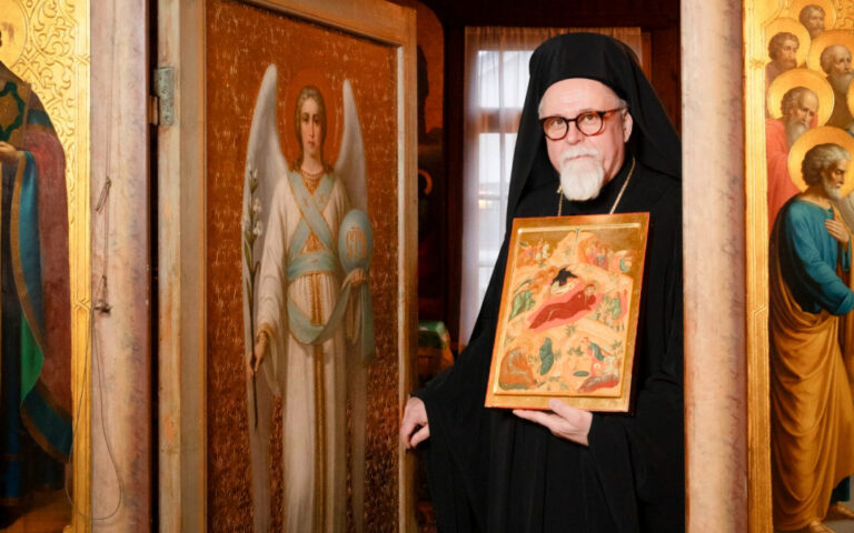Arkkipiispa Elia kuvattuna Valamon luostarin vanhassa kirkossa. Kuva otettu Aamun Koitto joulunumeron kansikuvaa varten. Kuva: Jyri Pitkänen / Aamun Koitto