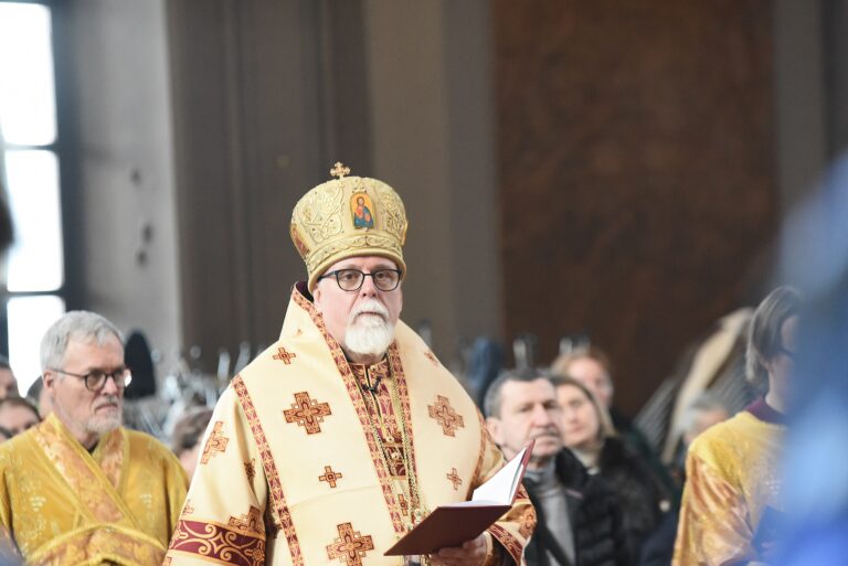 Helsingin ja koko Suomen arkkipiispa Elia kuvattuna Uspenskin katedraalissa rukouspalveluksessa rauhan puolesta Ukrainan sodan vuosipäivän aattona 23. helmikuuta. Kuva: Vlada Wahlsten. Teksti: Arkkipiispa Elia