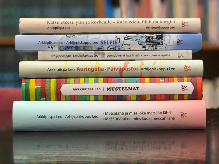 Uusimmassa runoteoksessaan Katso eteesi, ylös ja korkealle – Kačo edeh, üläh da korgiel arkkipiispa Leo pohtii ihmistä ja ihmisen tekoja.