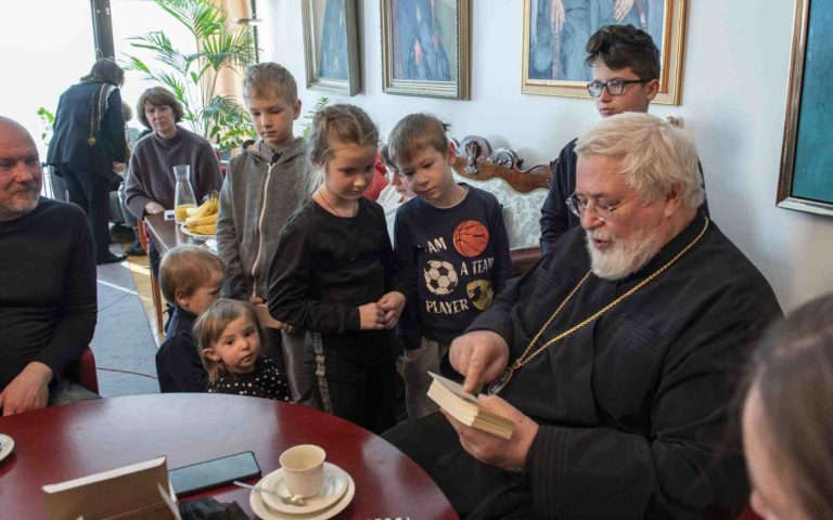 Ukrainalaisvieraat kertoivat isä esipaimenelle, mistä päin Ukrainaa he pakenivat ja millaisissa olosuhteissa. Arkkipiispa Leo kertoi seurakuntamme tiedotukselle, että erityisesti yhden perheen tarina jäi mieleen: