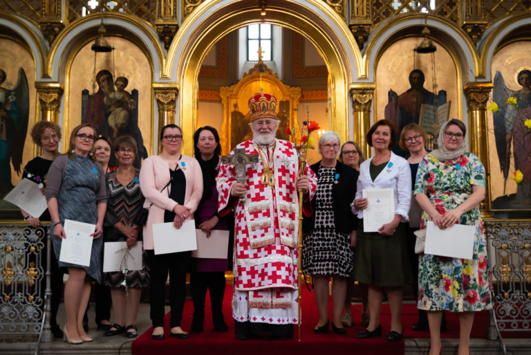 Helsingin ja koko Suomen arkkipiispa Leo palkitsi kasvatustyössä ansioituneita äitejä palmusunnuntaina 14. huhtikuuta. Äidit palkittiin Pyhän Karitsan ritarikunnan I luokan ritarimerkein Uspenskin katedraalissa liturgian yhteydessä.