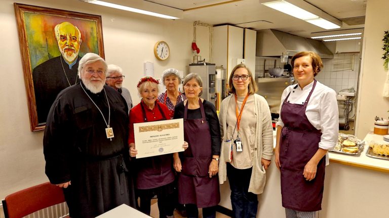 ”Ruokailu on seurakunnan diakonian alaista toimintaa, joka kuitenkin järjestetään hyvin pitkälle vapaaehtoisvoimin. Seurakunnan emäntä Marina Boubentchik tekee ruokaa rakkaudella ja huolella. Ruoka-aineiden hakemisessa, valmistamisessa ja jakamisessa on mukana 5-7 vapaaehtoista. Siksi on erityisen hienoa, että tämä tapahtuma on saanut piispallisen huomionosoituksen.”