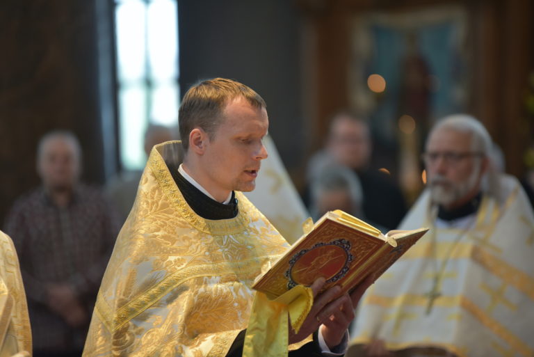 Lukija Anatoli Lappalainen Uspenskin katedraalissa. Kuva: Vlada Wahlsten