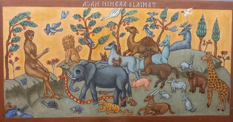 Adam nimeää eläimet. Ikonin maalannut Anjaleena Koponen-Aalto. Kuva: Maura Ihatsu