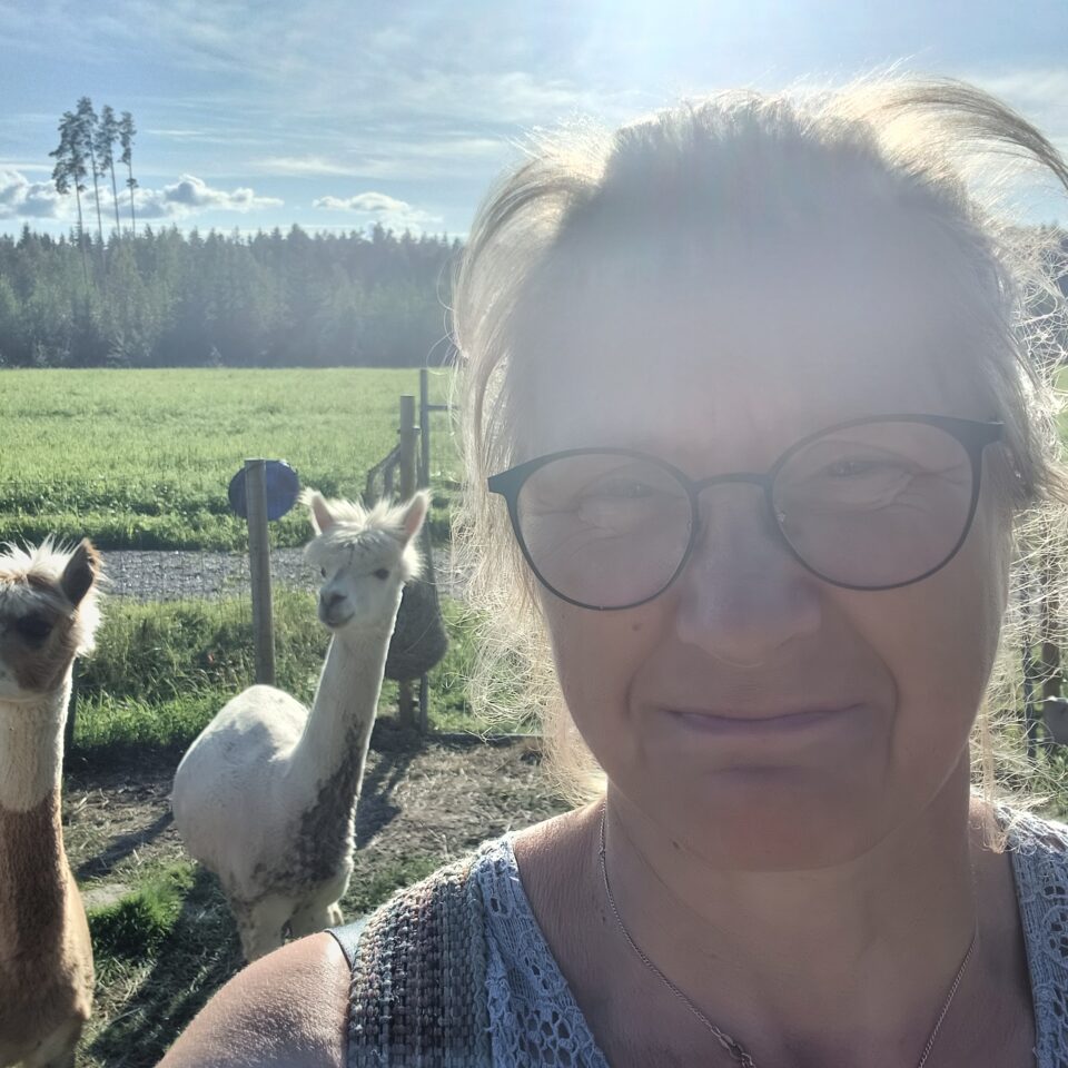 Marja Seppi-Lasarenko ja laamat. (Kuva Marjan omasta albumista.)