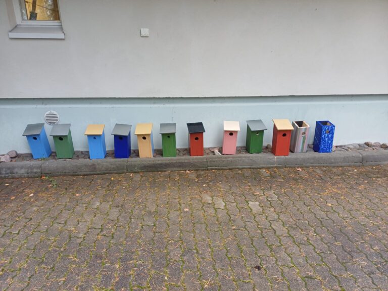 Viime syksynä ekopiiri järjesti linnunpönttöpajan. Pöntöt kiinnitettiin Tapiolan pyhittäjä Herman Alaskalaisen pyhäkön tontille tukemaan luonnon monimuotoisuutta. (Kuva: Marja Seppi-Lasarenko)