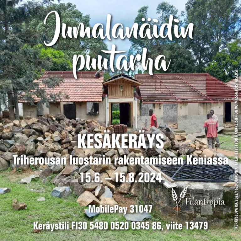 Kirkon kansainvälisen diakonian ja lähetyksen järjestö Filantropia ry tukee kesäkeräyksellä Triherousan nunnaluostarin rakentamista ja nunnien tekemää diakoniatyötä Kisumun hiippakunnassa Keniassa. Kesäkeräys on voimassa 15.6.–15.8.2024.