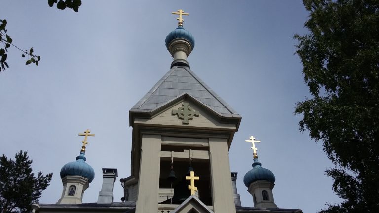 Hangon 125-vuotta täyttävän kirkon kupolit. Seurakuntasali rakennetaan kirkon viereen. Kuva: Aleksi Saveljeff.