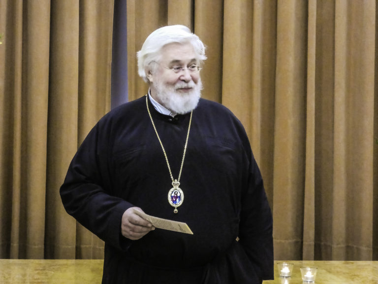 Isä esipaimen muisteli avauspuheessaan muun muassa säätiön alkuaikoja. Hän odottaa innolla uutuuskirjaa, joka käsittelee Karjalan kirkkoja.