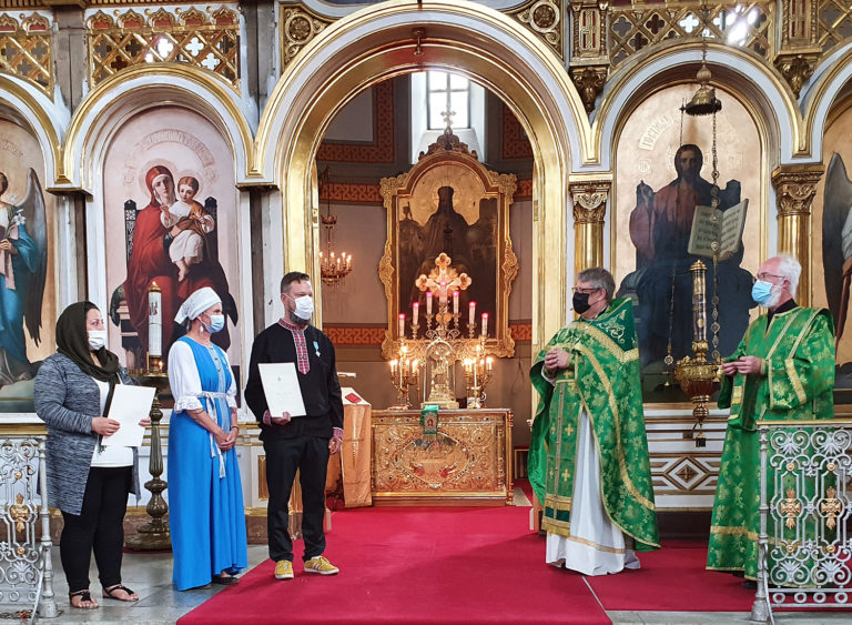 Mariam Jasim sekä Mika ja Miia Saatsi vastaanottivat tänään Helsingin ja koko Suomen arkkipiispa Leon heille myöntämät Pyhän Karitsan ritarikunnan I luokan ritarimerkit. Huomionosoitukset heille luovutti Helsingin ortodoksisen seurakunnan kirkkoherra Markku Salminen diakoni Pär Silénin avustamana. Huomionosoitukset luovutettiin Uspenskin katedraalissa liturgian yhteydessä.