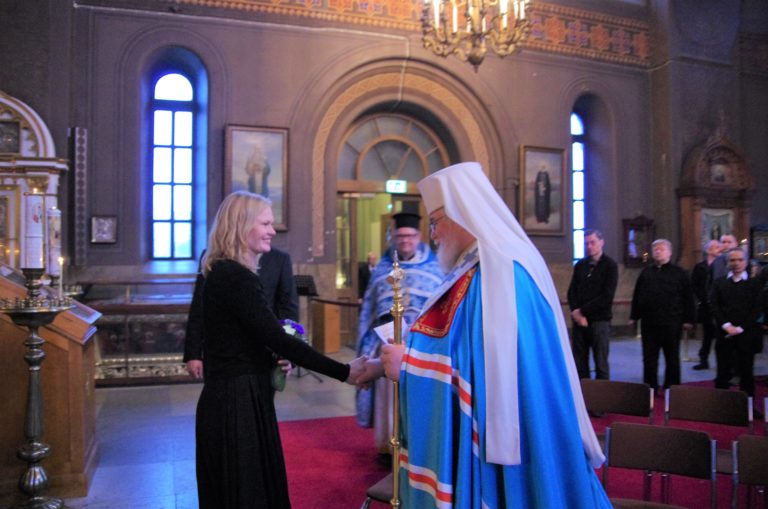 Perjantaina 6.12. juhlimme Pyhän Nikolaos Ihmeidentekijän, Myrran piispan muistopäivää ja Suomen itsenäisyyttä. Seurakuntamme eri alueilla vietettiin muistopäivää perinteisesti liturgian ja Nikolaos-juhlan merkeissä. Uspenskin katedraaliin saapui tiede- ja kulttuuriministeri Hanna Kosonen, joka tervehti Helsingin ja koko Suomen arkkipiispaa Leoa lämpimästi hymyillen.