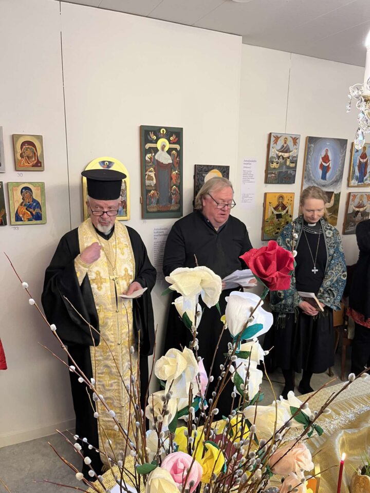 Ikoninäyttelyn avajaisia vietettiin ekumeenisessa hengessä sunnuntaina 22.3. Näyttely avattiin yhteisellä rukouksella.  Isä Matti Lipitsäinen toimitti lyhyen rukouspalveluksen yhdessä kanttori Petri Hutun kanssa. Avajaispuheen piti Hollolan evankelis-luterilaisesta seurakunnan pastori Katja-Margit Takatalo. Avajaispäivänä näyttelyyn tutustui 75 henkeä ja kahvit nautittiin keväisessä säässä.