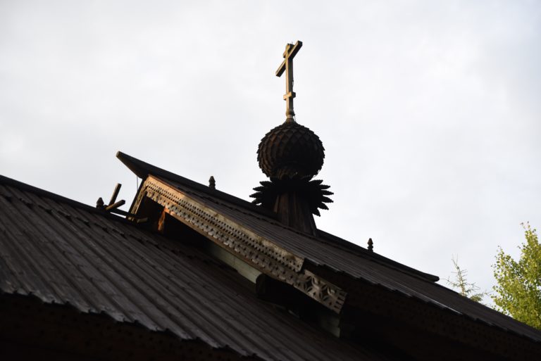Arkkitehti Ritva Westermarkin suunnittelemasta, pohjoisvenäläistä kirkkoarkkitehtuuria edustavasta temppelistä ei tullutkaan mikään tavanomainen, pieni rukoushuone – kirkon torni kohoaa peräti 16 metrin korkeuteen. Pitkälti keräysvaroin ja talkoovoimin rakennettu pyhäkkö on myös hirsirakennusperinteen taidonnäyte. Kirkko tehtiin hitaasti kasvaneesta, tiheäsyisestä hongasta. Sisälattiat ovat kuusta ja vesikattolaudat lehtikuusta. Kahdeksankulmainen kellotorni on toteutettu lohenpyrstöliitoksin. Pyhäkön kupolit, kellotornin ja kuistin pilarit sekä pihamaalla olevan matkamiehen ristin valmisti puuseppä Johannes Andrejev. Ikonostaasin ikonit ja alttari-ikonin maalasi Aleksander Wikström.