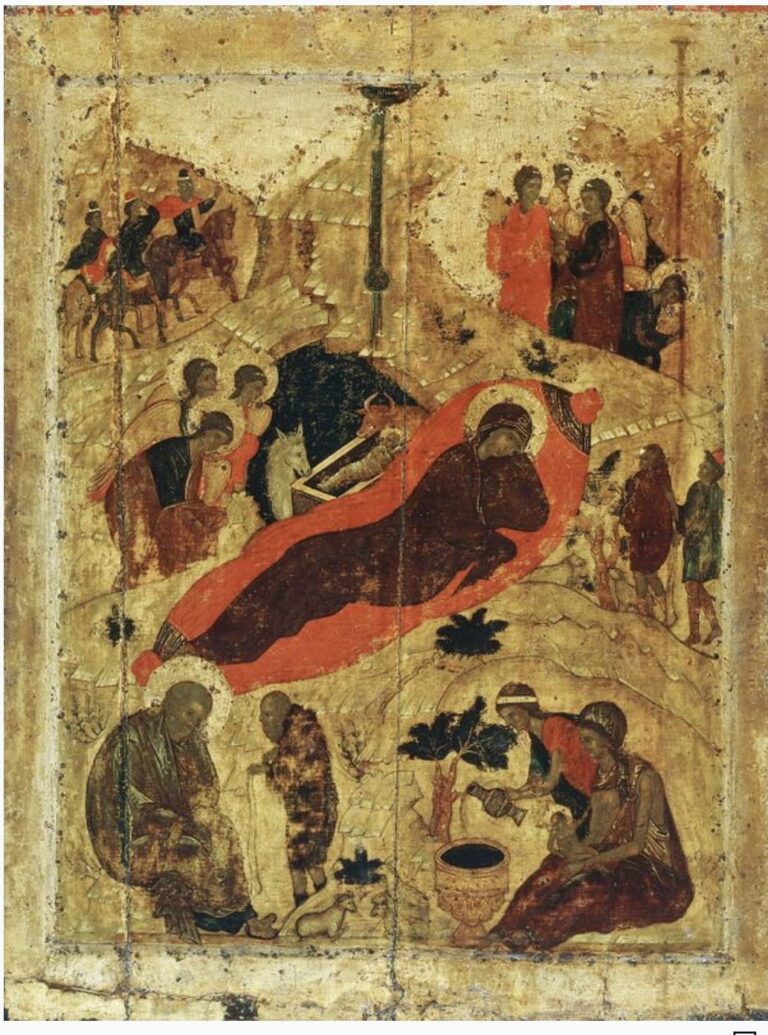 Kristuksen syntymäjuhlan ikoni. Lähde: Pyhittäjä Herman Alaskalaisen kirkon Facebook-sivun julkaisu
