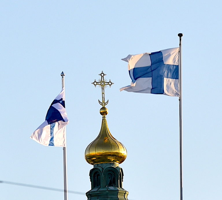 Suomen ortodoksisen kirkon pääkatedraalin, Uspenskin katedraalin kupoli ja risti näkyvät kaukaa Senaatintorilta ja kutsuvat yhteiseen rukouspalvelukseen. Itsenäisyyspäivänä kirkossa toimitetaan erityinen rukouspalvelus, jossa rukoillaan maamme esivallan puolesta ja kiitetään itsenäisyydestä. Kuva: Vlada Wahlsten