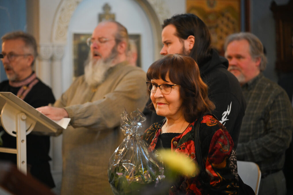 Juhlaan osallistui myös äiti Nektaria, joka kiitti ystäväpiiriä Lintulan luostarin puolesta.
