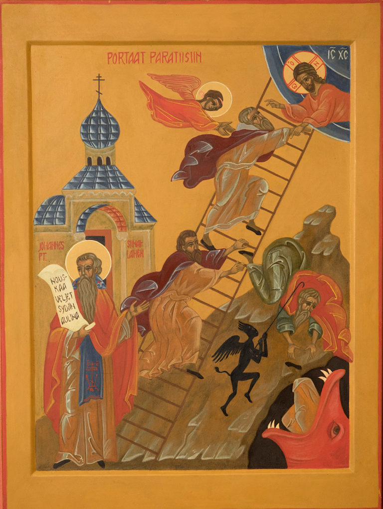 Suuren paaston neljättä sunnuntaita kutsutaan pyhittäjä Johannes Siinailaisen sunnuntaiksi. Tuo kuuluisa 600-luvulla elänyt askeetti tunnetaan myös nimellä Johannes Klimakos, Portaiden Johannes, sillä hänen hengellinen pääteoksensa on opetuspuheiden sarja nimeltä Portaat. Opetuspuheissaan pyhittäjä Johannes ohjaa ihmisen nousua kohti Jumalaa ikään kuin tikapuiden askelmia pitkin.