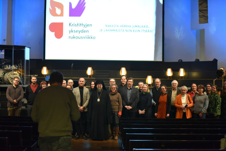 Ekumeenisen rukousviikon avajaistilaisuuden päätteeksi otettiin yhteiskuva. Teksti ja kuva: Vlada Wahlsten
