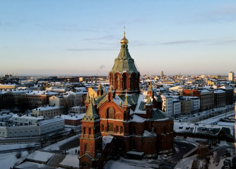 Uspenskin katedraali on Helsingin ortodoksisen seurakunnan ja samalla Suomen ortodoksisen kirkoon pääkirkko ja jumalanpalveluselämän keskus. Kuva: Kuvakaappaus Uspenskin katedraalin suoratoistosta