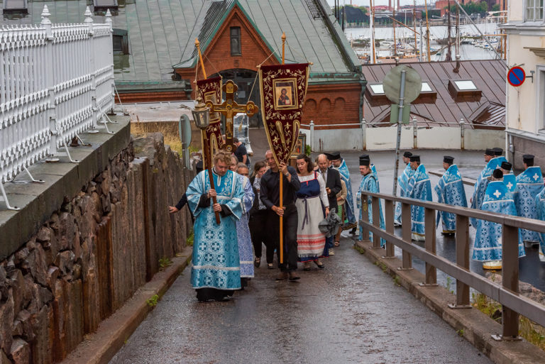 Noin klo 16.30 Ristisaatto päättyy Uspenskin katedraaliin (Kanavakatu 1, Helsinki), jossa toimitetaan akatistos Jumalansynnyttäjälle kahdella kielellä.
