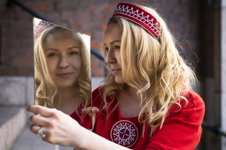 – Pukuni on muuten täysin perinteinen, mutta tämä uusi päähine on tiaramallinen. Kun tietää perinteen, sitä pystyy soveltamaan nykyaikaan. Kulttuuri muuttuu ja elää ajassa, iloitsee Katja Gauriloff.