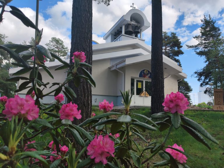 25 vuotta täyttävässä Pyhittäjä Herman Alaskalaisen kirkossa toimitetaan kesälläkin jumalanpalveluksia sekä järjestetään kesäkahvilaa ja muita tilaisuuksia. Kuva: Vlada Wahlsten