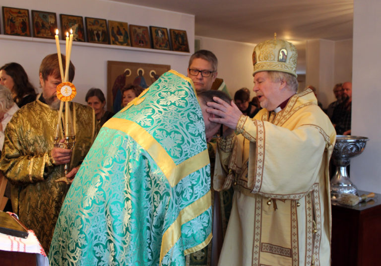 Helsingin metropoliitta Ambrosius vihki pastori Kalevi Kasalan rovastiksi Lohjan Karjalan valistajien kirkon praasniekkaliturgian yhteydessä 4. marraskuuta.