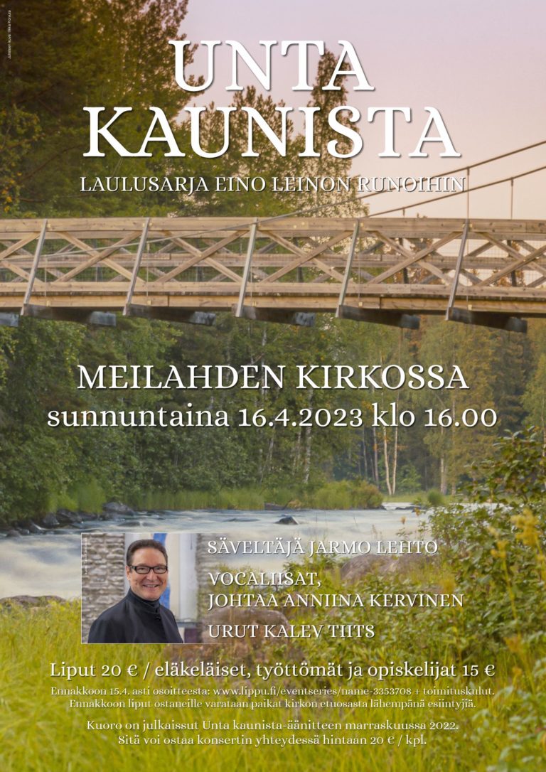 Kuoro tulkitsee Anniina Kervisen johdolla Jarmo Lehdon säveltämät Unta kaunista-laulusarjan ja Keväthymni-kuorokonserton, jotka molemmat pohjautuvat Eino Leinon teksteihin. Lisäksi konsertissa kuullaan Lehdon sovittamat A. Gretchaninovin Kerubiveisu ja Ylistä Herraa, minun sieluni (ps 103)naiskuorolle ja uruille.