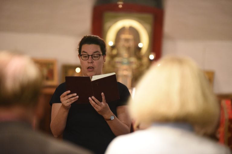 Kuvituskuva Uspenskin katedraalin kryptakappelin liturgiasta. Palveluksessa kuorolaulusta on vastannut katedraalin kanttori VArvara Merras-Häyrynen.