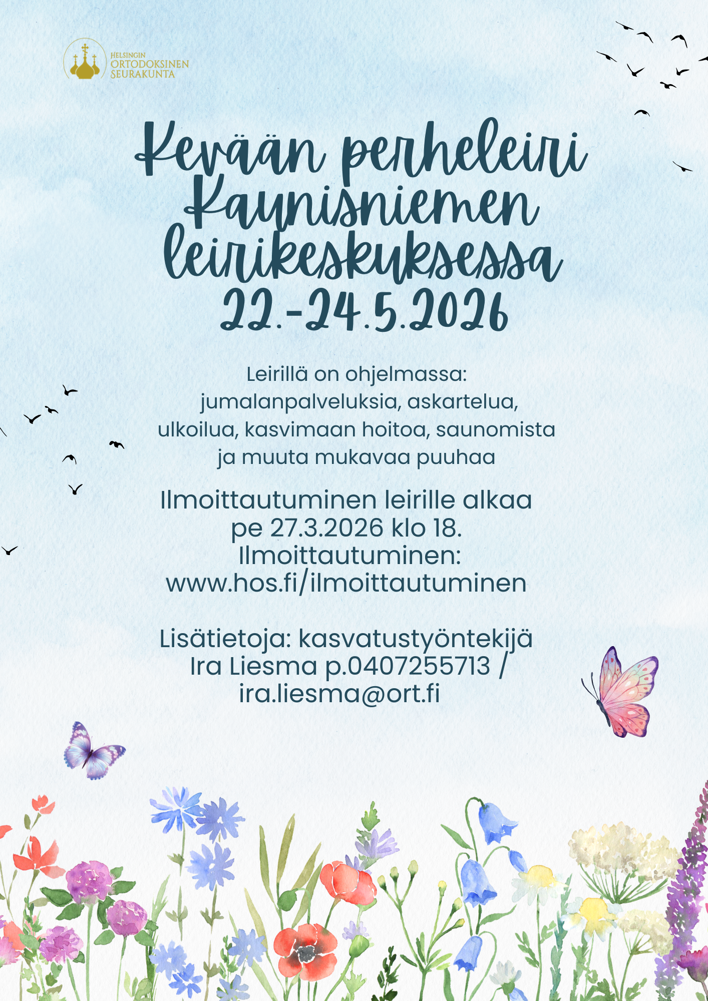 Helsingin ortodoksinen seurakunta järjestää kevään perheleirin 22.-24.5.2026 Kaunisniemen leirikeskuksessa. Tällä kertaa leiri huipentuu helluntaihin, joka on kirkon syntymäpäivä.
