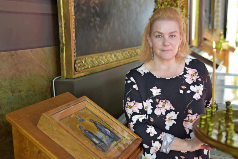 – Uspenskin katedraaliin on lyhyt matka, matala kynnys ja helppoa tulla lasten kanssa. Poikani on ollut täällä ponomarina, molemmat tyttäreni ovat olleet täällä töissä lastenhoitajina ja kynttilävastaavina. Olen kiittänyt erityisesti ylidiakoni Juha Lampista ja kripareita siitä, että lapset tulevat mielellään kirkkoon.