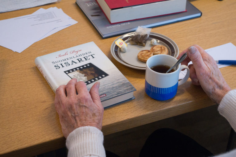 Iloinen puheensorina ja tuolien kolina täyttävät Lahden seurakunnan kerhohuoneen, kun kirjallisuuspiiriläiset asettautuvat teemukeineen yhteisen pöydän ääreen. Ensin vaihdetaan kuulumisia. Lusikat kilisevät teekupeissa ja pöydälle asetellut keksit ja viinirypäleet maistuvat.