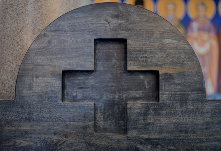 Risti Pyhittäjä Herman Alaskalaisen kirkossa Tapiolassa. Kuva: Dimitri Tolonen