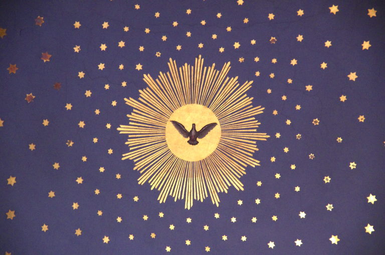 Kyyhkynen kuvattuna Uspenskin katedraalin katossa. Kyyhkynen symboloi Pyhää Henkeä. Sitä pidetään myös rauhan ja sovinnon symbolina. Kuva: Vladimir Sokratilin