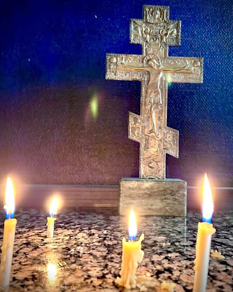 Tuohuksia vainajien muistopöydällä. Kuva: Helsingin ortodoksinen seurakunta