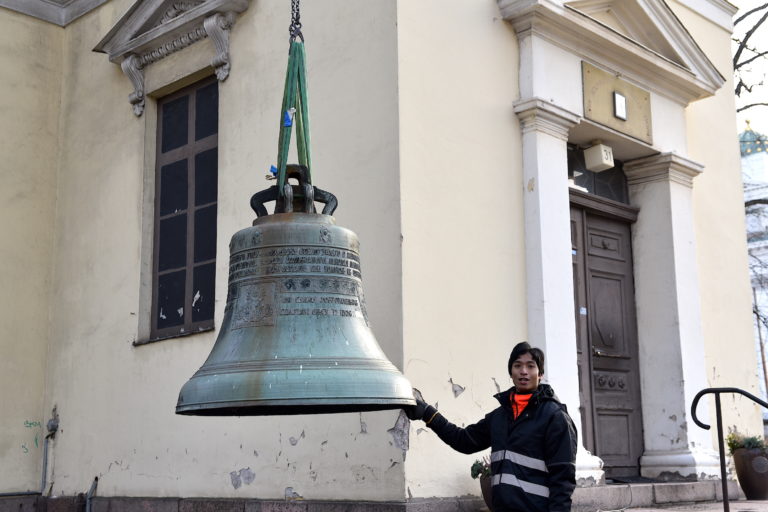 ”Se on todella harvinaista 1600-luvun long shape-mallia. Se on valettu arviolta 1700-luvulla. Ei ole kuitenkaan tiedossa, mistä kello on alkujaan peräisin ja milloin se on asennettu Pyhän Kolminaisuuden kirkkoon. Kellon kieli eli sisällä oleva lyöntivasara oli väärä ja kello oli vähällä mennä rikki. Nyt kello tulee soimaan alkuperäisellä, verrattain harvinaisella tyylillä”, kertoo Supavit Nummelin.