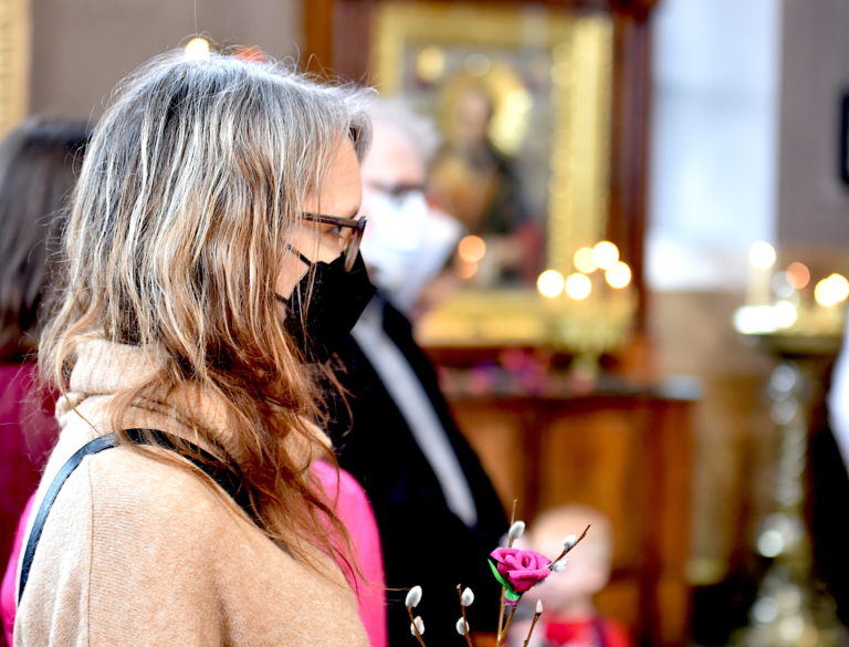 Jumalanpalveluksissa suositellaan edelleen maskin käyttöä. Kuva: Vlada Wahlstén/Helsingin ortodoksinen seurakunta