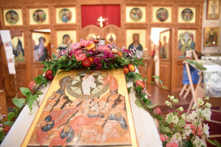 Kristuksen kirkastumisen ikoni analogilla Porvoon kirkon temppelijuhlassa 6.8.2022. Kuva: Vlada Wahlstén