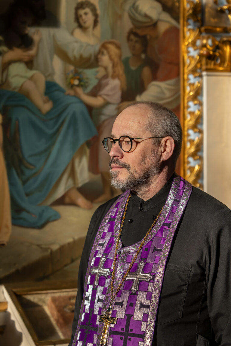 Isä Kimmo Kallinen kuulee muiden kirkkomme pappien tavoin usein kysymyksen, kuinka paastota oikein. Isä Kimmo lähestyy kysymystä pyhien opetuksien kautta. Taustalla Uspenskin katedraalin yksi rakastettu ikoni, Kristus siunaa lapsia. Kuva: Mikael Rantalainen