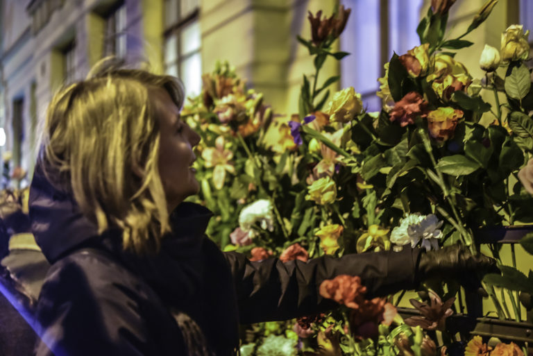 Kymmeniä ihmisiä kokoontui juutalaisen synagogan edustalle maanantai-iltana Helsingissä seuraamaan synagogan aidan kukittamista. Helsingin ortodoksisen seurakunnan nuoret aikuiset ja muut suvaitsevaisuuden kannattajat kukittivat synagogan aidan lahjoituksena saaduin kukkasin.