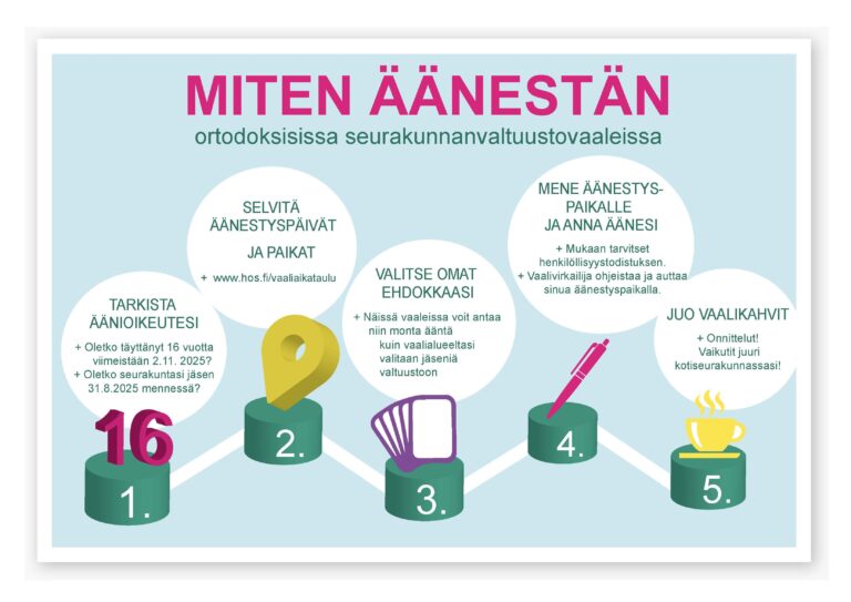 Helsingin ortodoksisen seurakunnan seurakunnanvaltuuston vaali toimitetaan 2.11.–16.11. 2025.