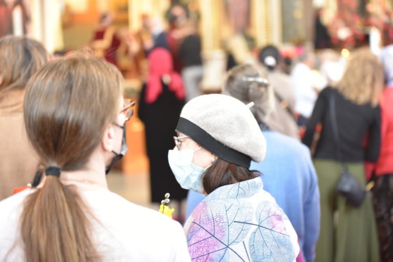 Kasvomaskien käyttö vähentää merkittävästi koronatartuntariskiä. Kuvituskuva Uspenskin katedraalin jumalanpalveluksesta. Kuva: Vlada Wahlstén