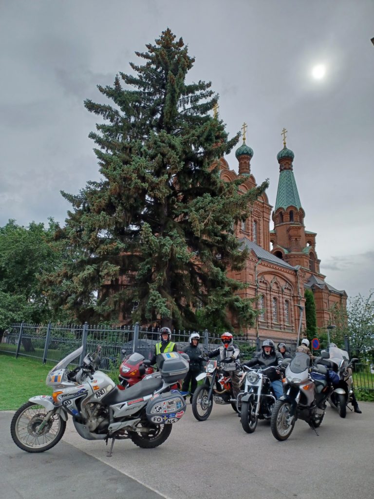 Kuva Suomen tiettävästi ensimmäiseltä ortodoksiselta moottoripyöräpyhiinvaellukselta kesällä 2022. Kuva: Minna Jokinen