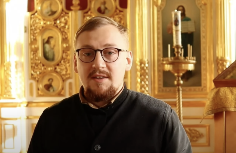 Diakoni Sergeiy Daniilov kertoo ensimmäisellä videolla kirkkomme käytössä olevasta kalenterista. Ukrainassa vietetään pääsiäistä vanhan, juliaanisen kalenterin mukaan, kuten muissakin ortodoksisissa maissa. Kuva: Kuvakaappaus ensimmäiseltä videolta YouTubesta. Teksti: Vlada Wahlstén
