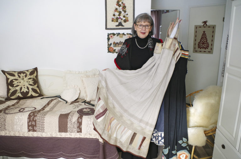 ”Olen kotoisin Kiikoisista Satakunnasta. Viipurin läänin Pyhäjärveltä lähtöisin olevat karjalaiset evakot asutettiin aikoinaan Kiikoisissa samaan kylään. Siellä asuessa tuntui siltä, että nyt ollaan aidossa karjalaiskylässä. Olen kiertänyt melkein kaikki Satakunnan pitäjät. Viime vuonna muutin Valamon kupeeseen Ksenia-taloon. Matkassa oli mutkia. Minulle sanottiin, että Ksenia-taloihin on pitkät jonot. Menin heinäkuussa kirkkoon Konevitsan Jumalanäidin luokse ja pyysin apua, koska en oikein tiennyt mitä tehdä. Syyskuussa igumeni Sergei soitti ja sanoi, että Valamossa tarvitaan ompelijaa. Hän kysyi, olisinko vielä valmis muuttamaan Ksenia-taloon. Jos joku väittää, ettei ihmeitä tapahdu, niin sanon, että tapahtuupas.