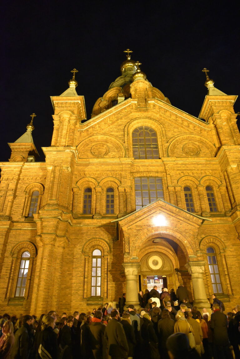 Pääsiäisyön jumalanpalvelus on koonnut vuosittain ihmisiä yhteen pyhäkköihimme. Uspenskin katedraalissa kirkkoon on alussa perinteisesti saapunut tuhatkunta osanottajaa.
