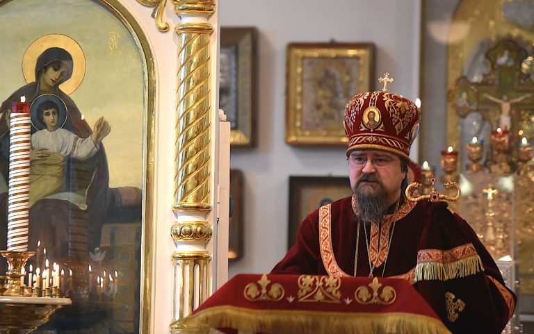 Piispa Sergein saarna Pyhien marttyyrien Vera, Nadezdan, Ljubovin ja heidän äitinsä Sofian kirkon temppelijuhlassa Helsingissä 17.9.2022.
