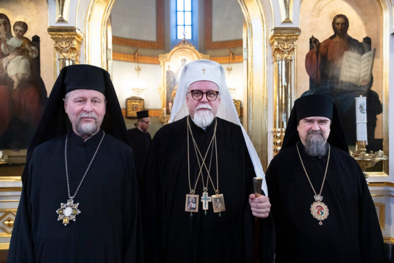 Kirkkomme toimessa olevat piispat, vasemmalta Kuopion ja Karjalan metropoliitta Arseni, Helsingin ja koko Suomen arkkipiispa Elia ja Oulun metropoliitan tehtäviä hoitava Haminan piispa Sergei. Kuva: Jyri Pitkänen