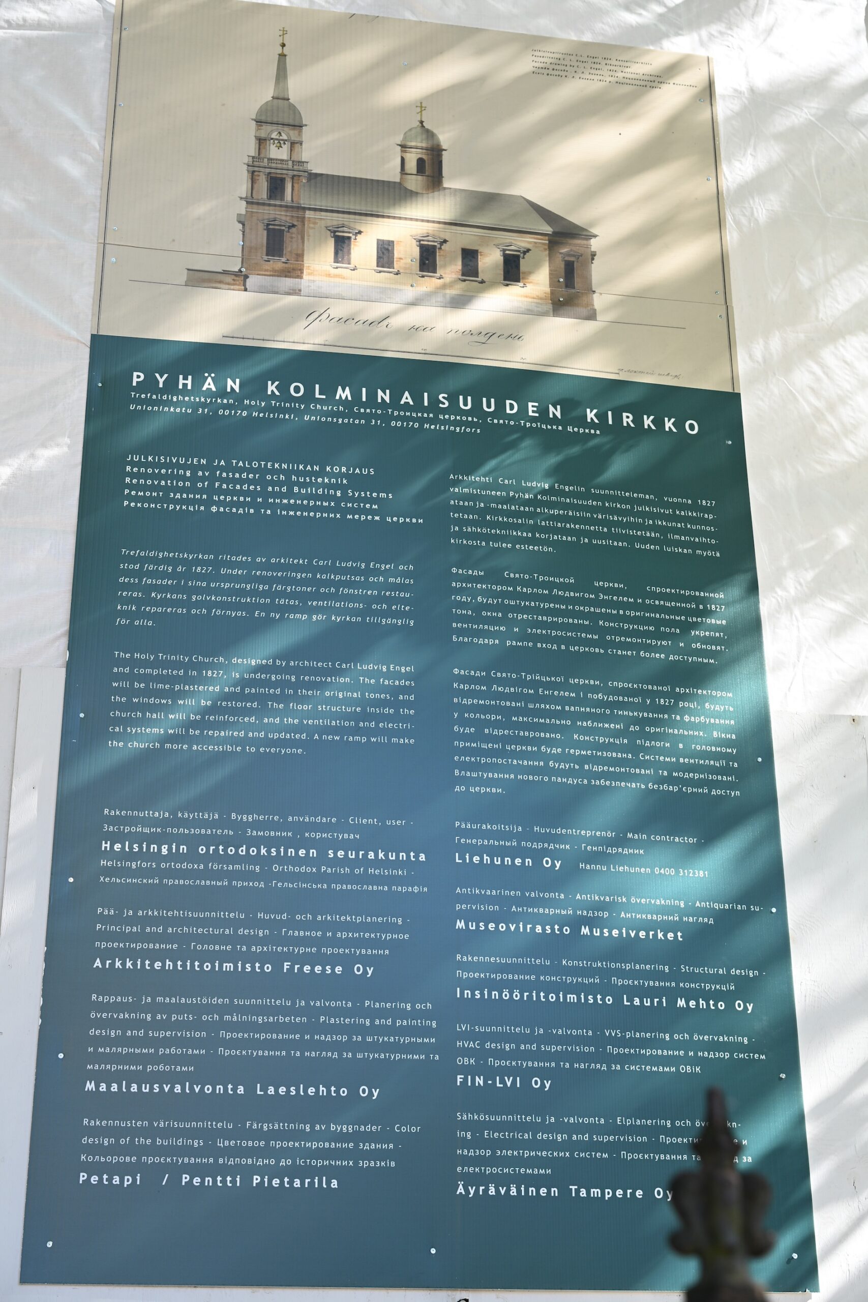 Urakka kilpailutettiin uudelleen julkisen hankintalainsäädännön mukaan ja kilpailutuksen voitti Liehunen Oy. Urakoitsija on aiemmin toteuttanut muun muassa Uspenskin katedraalin sähköremontin rakenteelliset työt vuonna 2020 sekä julkisivujen ja katon kunnostuksen Pyhän Kolminaisuuden kirkon porttirakennuksien eli pyhäkön seurakuntasali Staroshkan ja talousrakennuksen osalta vuonna 2019.