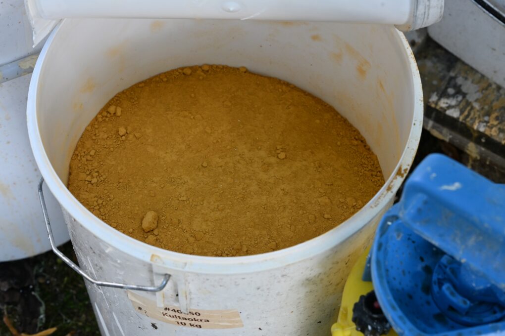 ”Kirkon oikea sävy löytyi lopulta sekoittamalla kultaokraan hieman vihreää umbraa”, kuvailee Matti Liehunen.